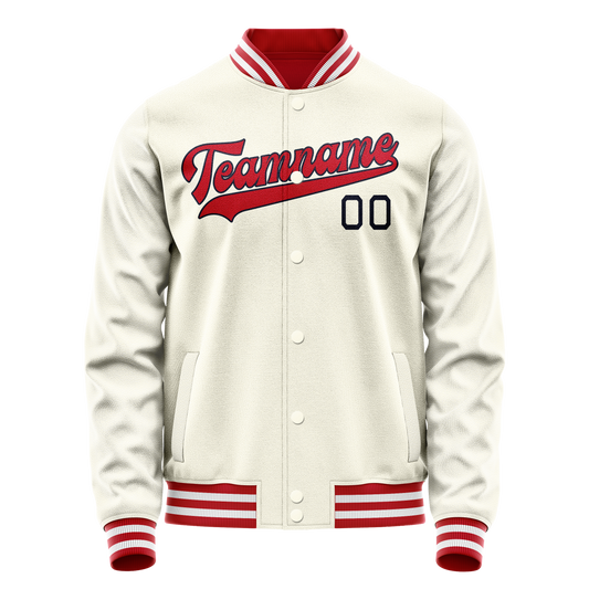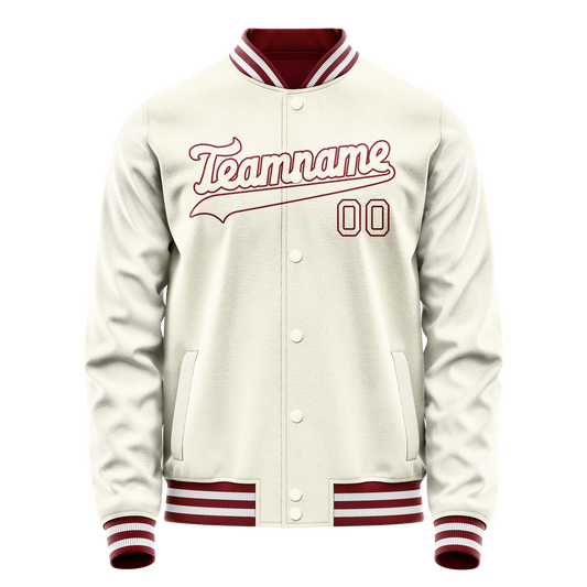 Custom Cream Crimson Solid Color Varsity Letterman Jacket
