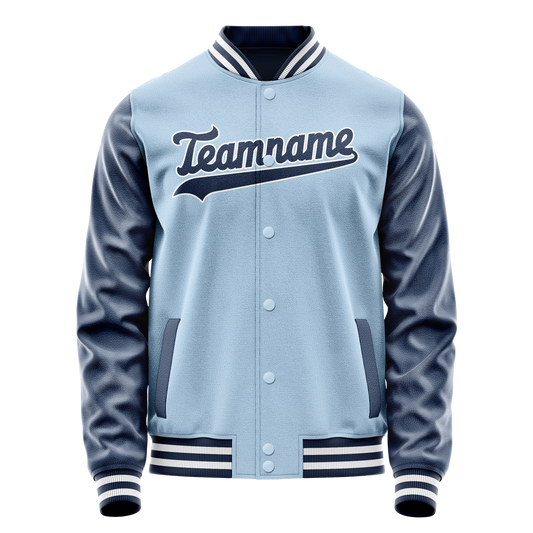 Custom Light-Blue Navy Solid Color Varsity Letterman Jacket