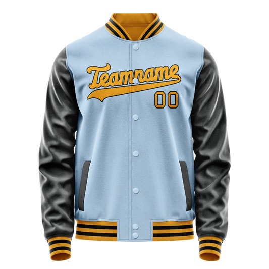 Custom Light-Blue Black Solid Color Varsity Letterman Jacket