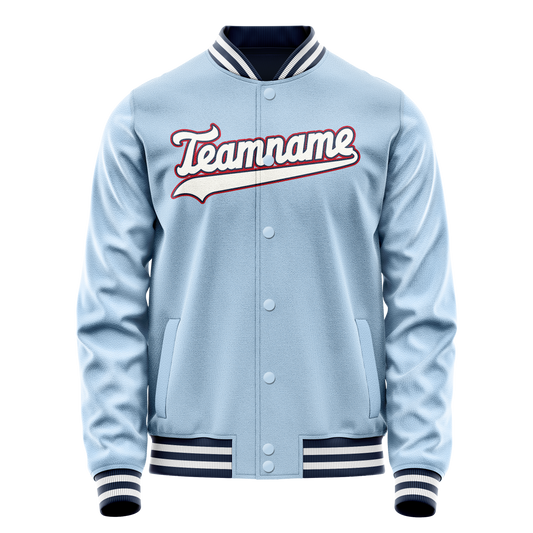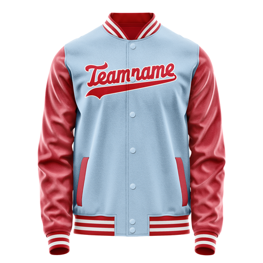 Custom Light-Blue Red Solid Color Varsity Letterman Jacket