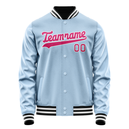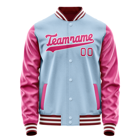 Custom Light-Blue Pink Solid Color Varsity Letterman Jacket