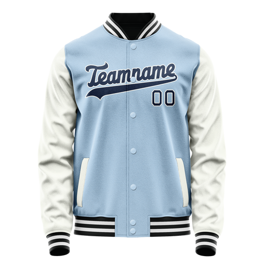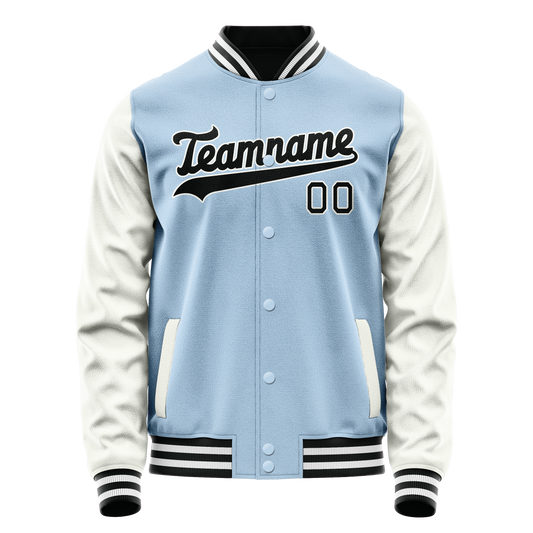 Custom Light-Blue White Solid Color Varsity Letterman Jacket