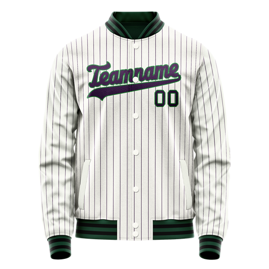 Custom White Purple Purple Pinstripe Varsity Letterman Jacket