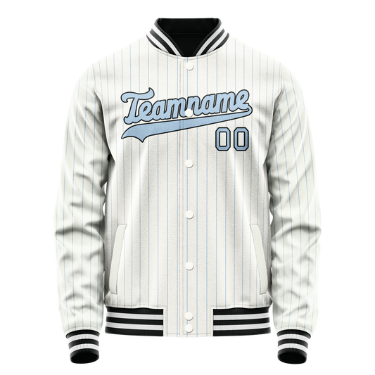 Custom White Light-Blue Light Blue Pinstripe Varsity Letterman Jacket