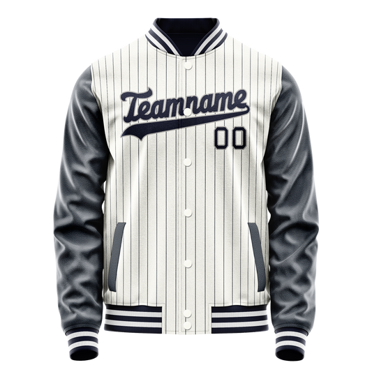 Custom White Navy Navy Pinstripe Varsity Letterman Jacket