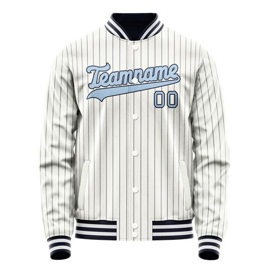 Custom White Light-Blue Navy Pinstripe Varsity Letterman Jacket