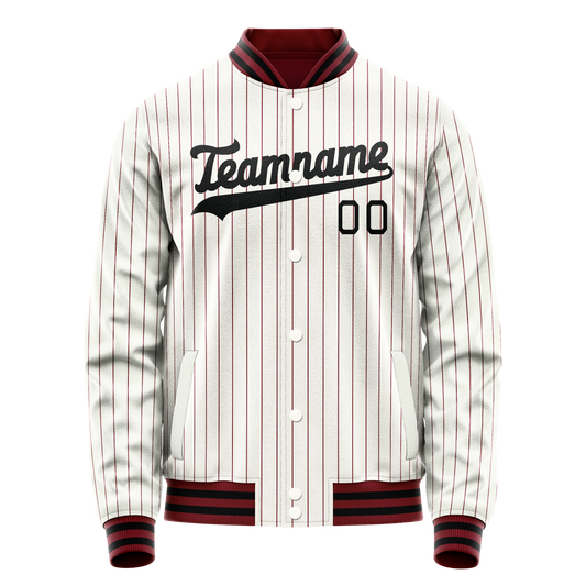 Custom White Red Black Pinstripe Varsity Letterman Jacket