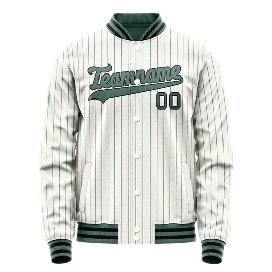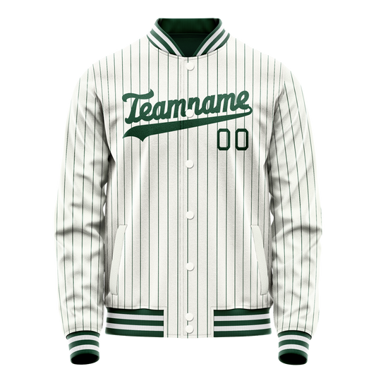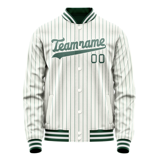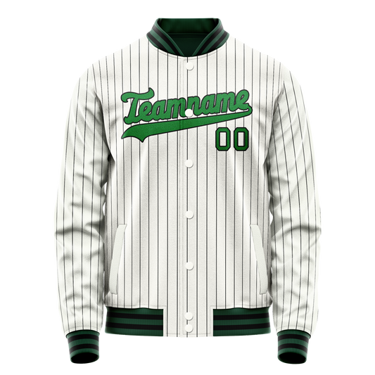 Custom White Kelly-Green Kelly Green Pinstripe Varsity Letterman Jacket