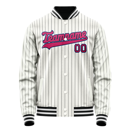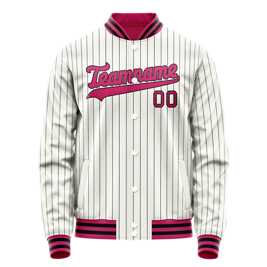 Custom White Pink Black Pinstripe Varsity Letterman Jacket