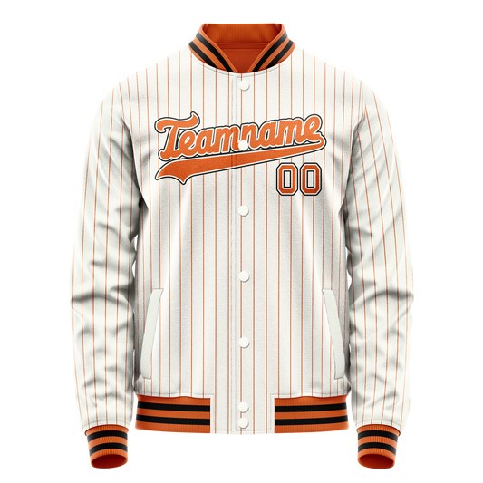 Custom White Orange Orange Pinstripe Varsity Letterman Jacket