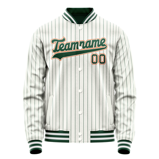Custom White Orange Kelly Green Pinstripe Varsity Letterman Jacket