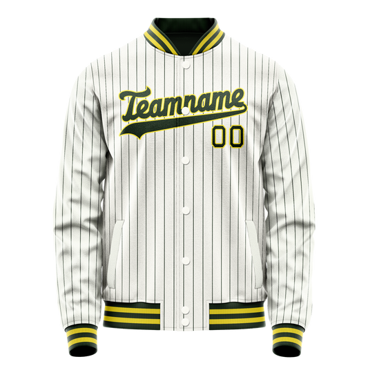 Custom White Neon-Green Black Pinstripe Varsity Letterman Jacket