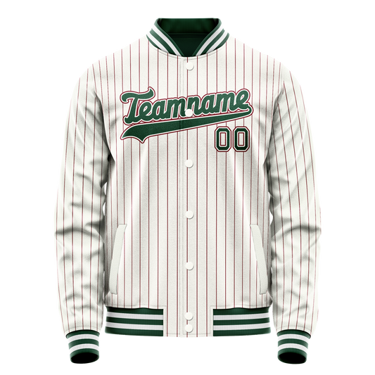 Custom White Kelly-Green Red Pinstripe Varsity Letterman Jacket