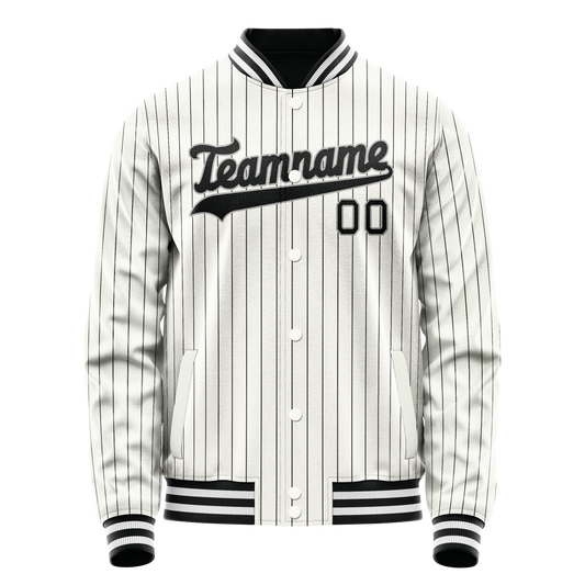 Custom White Black Black Pinstripe Varsity Letterman Jacket
