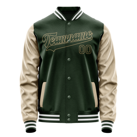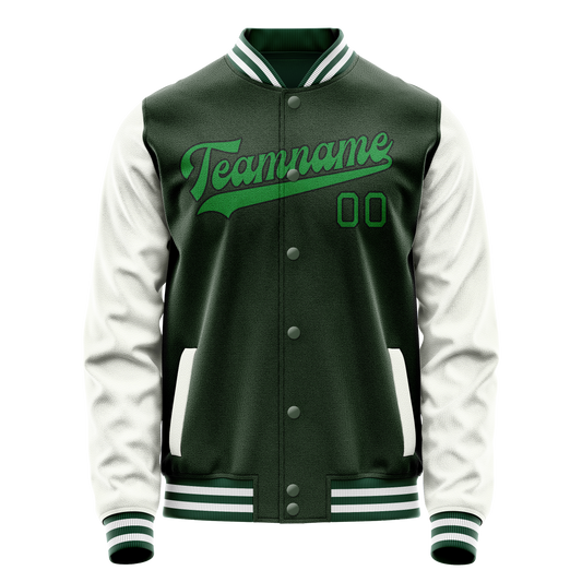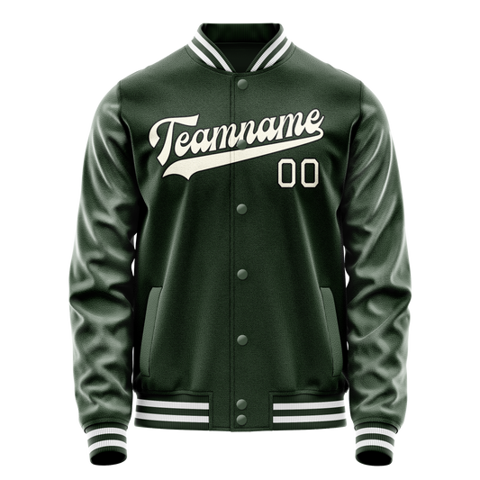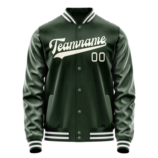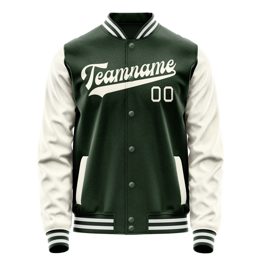Custom Green Cream Solid Color Varsity Letterman Jacket