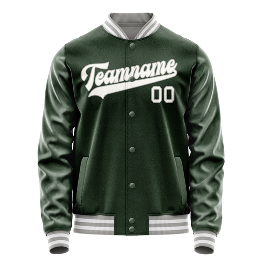 Custom Green Gray Solid Color Varsity Letterman Jacket