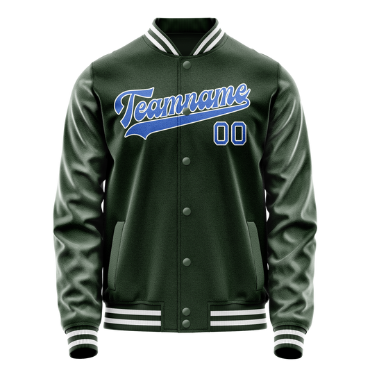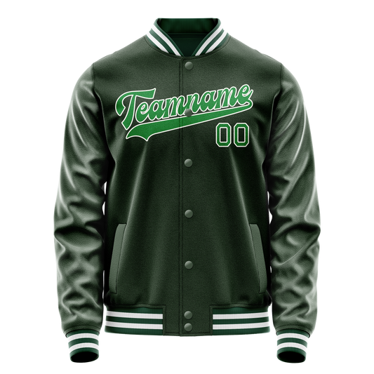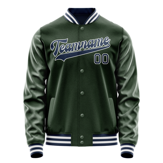 Custom Green Navy Solid Color Varsity Letterman Jacket