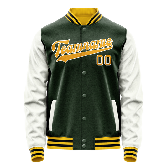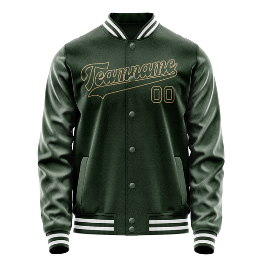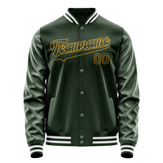 Custom Green Gold Solid Color Varsity Letterman Jacket