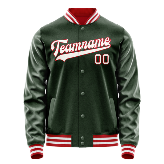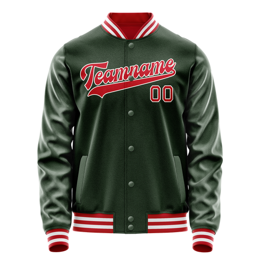 Custom Green Red Solid Color Varsity Letterman Jacket