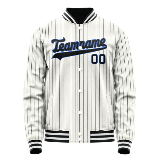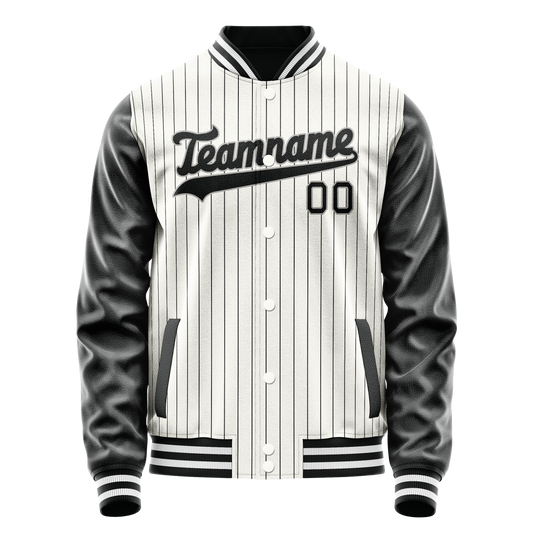 Custom White Black Gray Pinstripe Varsity Letterman Jacket