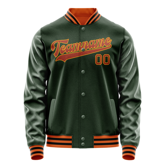 Custom Green Orange Solid Color Varsity Letterman Jacket