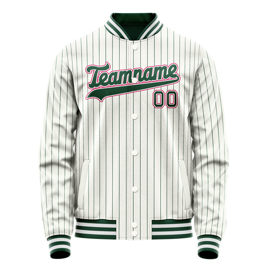 Custom White Pink Kelly Green Pinstripe Varsity Letterman Jacket