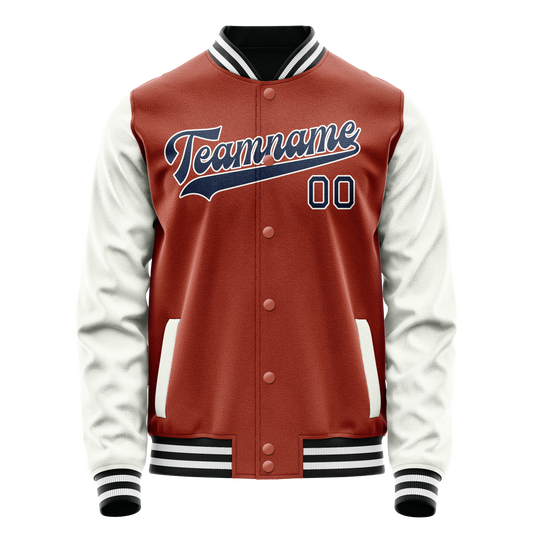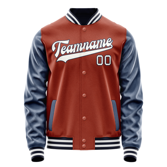 Custom Texas-Orange Navy Solid Color Varsity Letterman Jacket