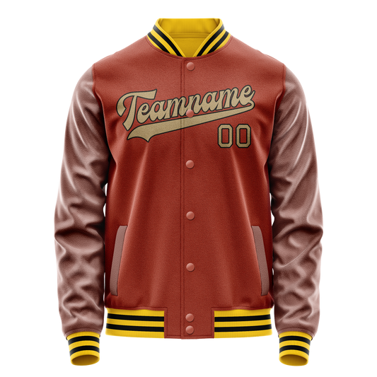 Custom Texas-Orange Old-Gold Solid Color Varsity Letterman Jacket