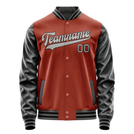 Custom Texas-Orange Gray Solid Color Varsity Letterman Jacket