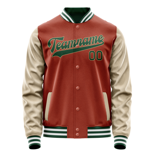 Custom Texas-Orange Cream Solid Color Varsity Letterman Jacket