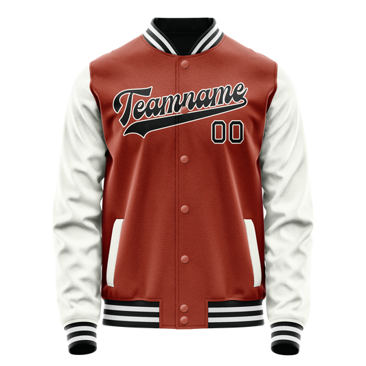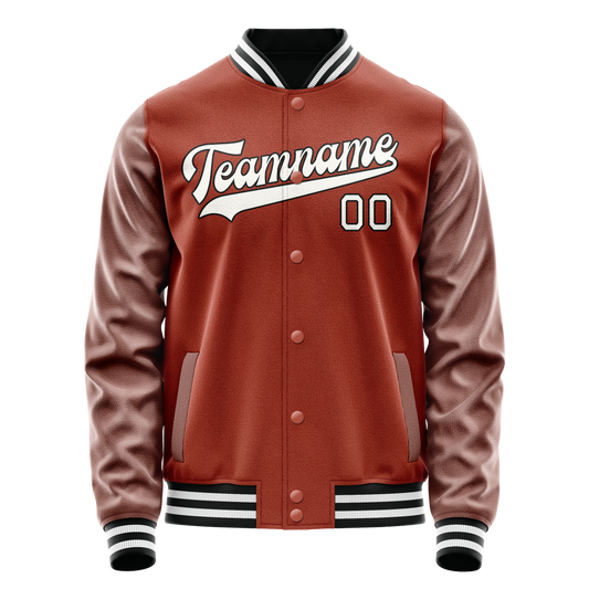 Custom Texas-Orange White Solid Color Varsity Letterman Jacket