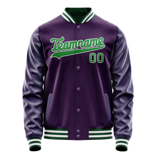 Custom Purple Kelly-Green Solid Color Varsity Letterman Jacket