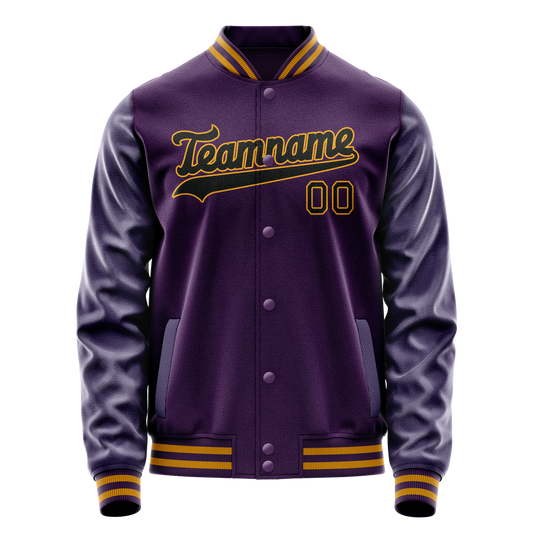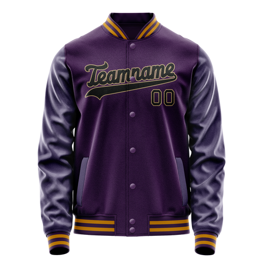 Custom Purple Black Solid Color Varsity Letterman Jacket