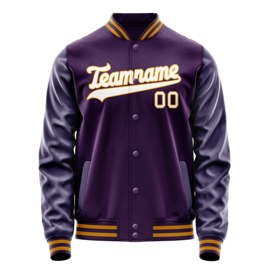 Custom Purple White Solid Color Varsity Letterman Jacket