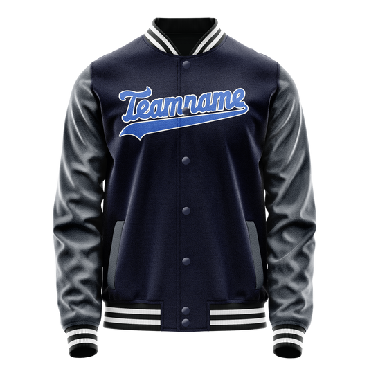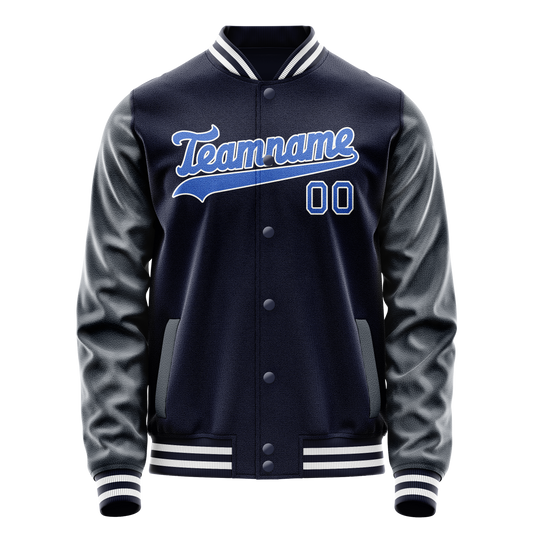 Custom Navy Gray Solid Color Varsity Letterman Jacket