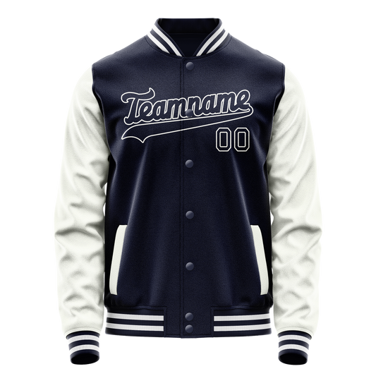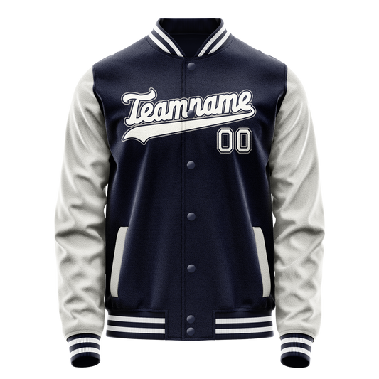 Custom Navy White Solid Color Varsity Letterman Jacket