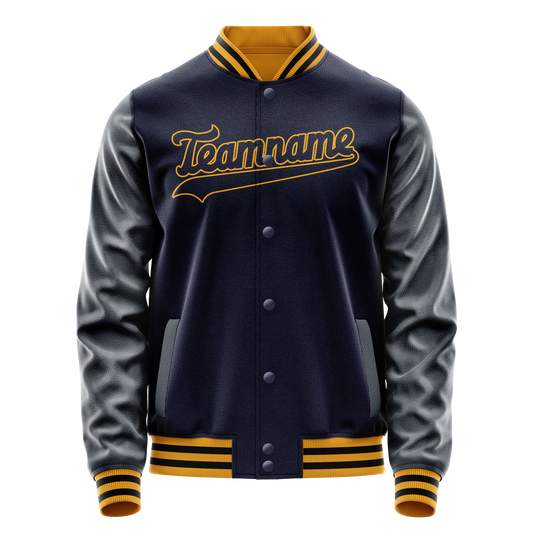 Custom Navy Old-Gold Solid Color Varsity Letterman Jacket