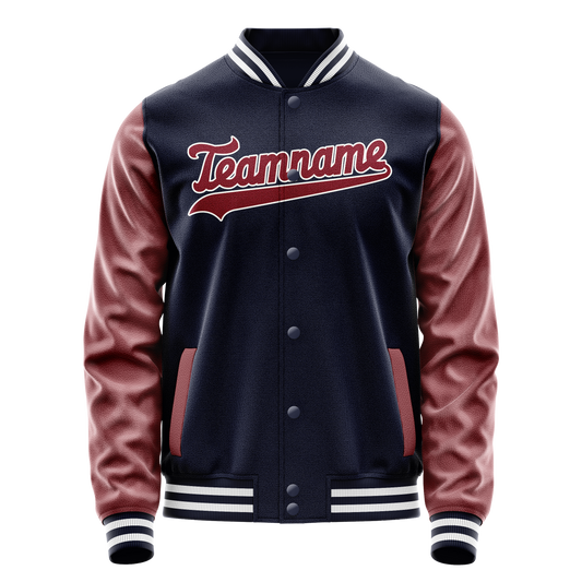 Custom Navy Crimson Solid Color Varsity Letterman Jacket