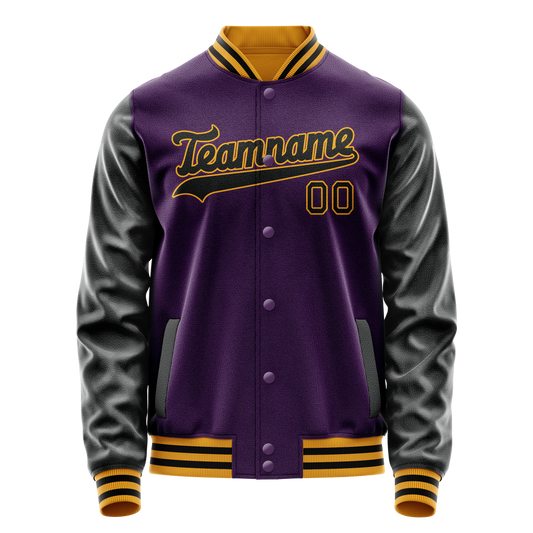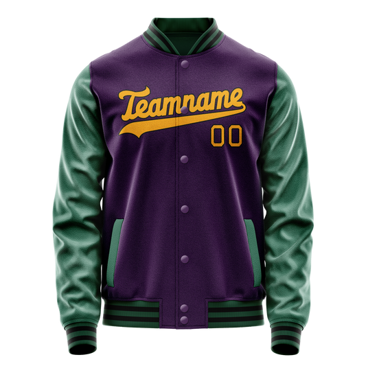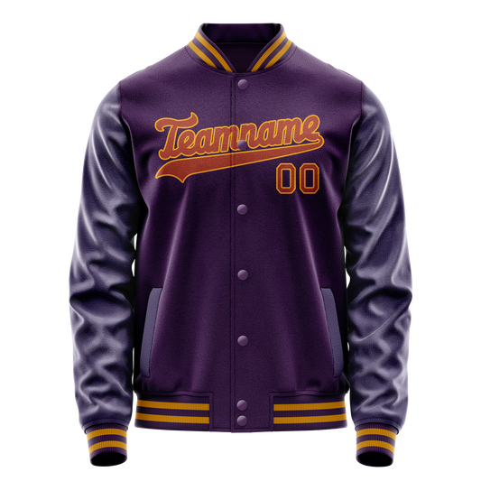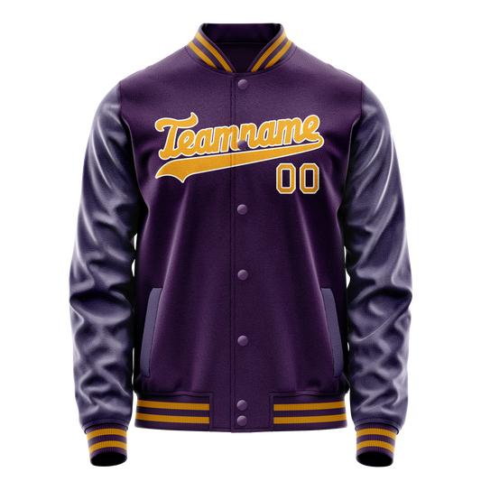 Custom Purple Gold Solid Color Varsity Letterman Jacket
