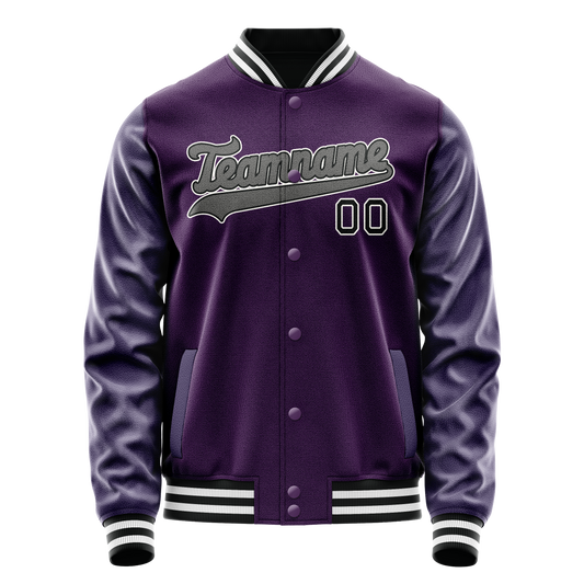Custom Purple Gray Solid Color Varsity Letterman Jacket