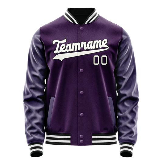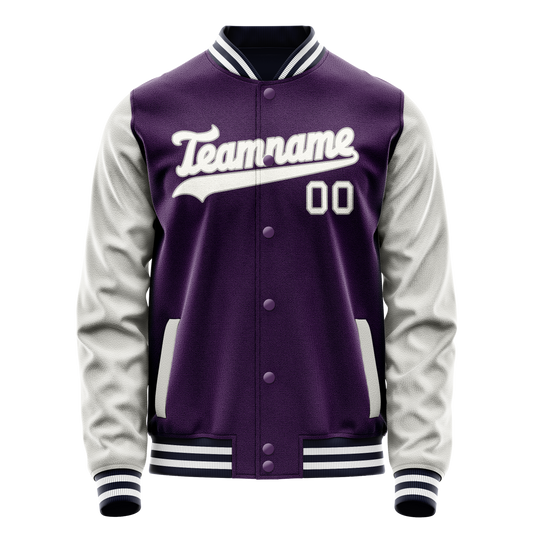 Custom Purple White Solid Color Varsity Letterman Jacket