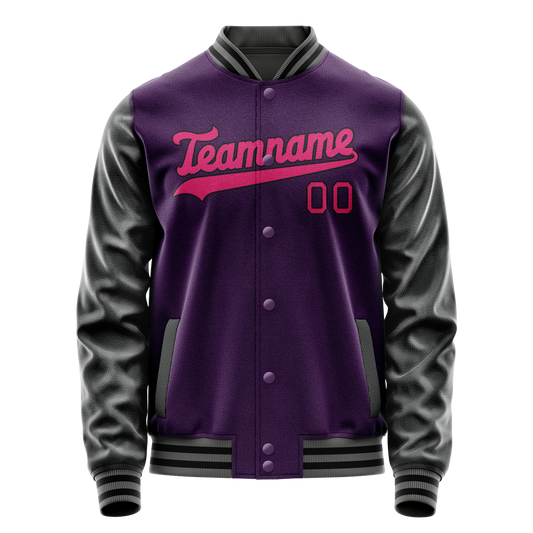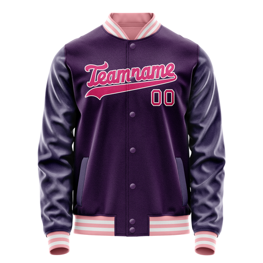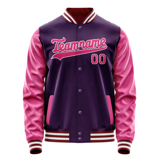 Custom Purple Pink Solid Color Varsity Letterman Jacket