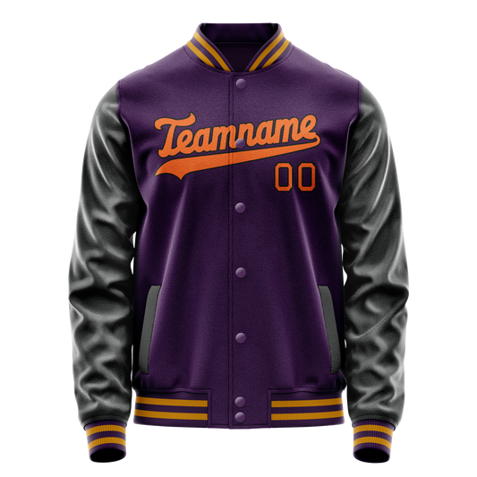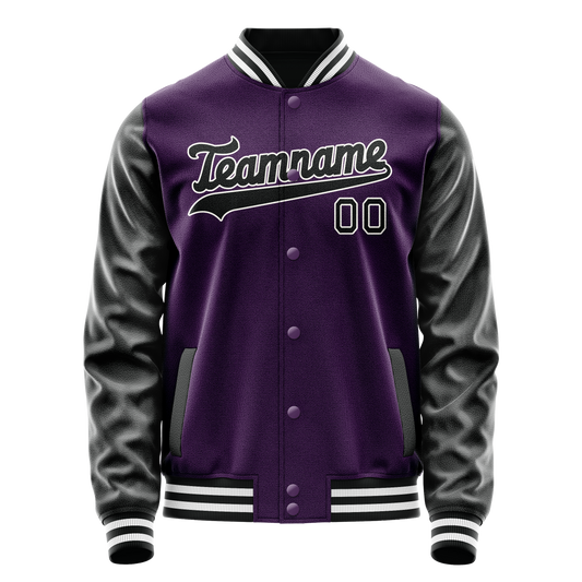 Custom Purple Black Solid Color Varsity Letterman Jacket