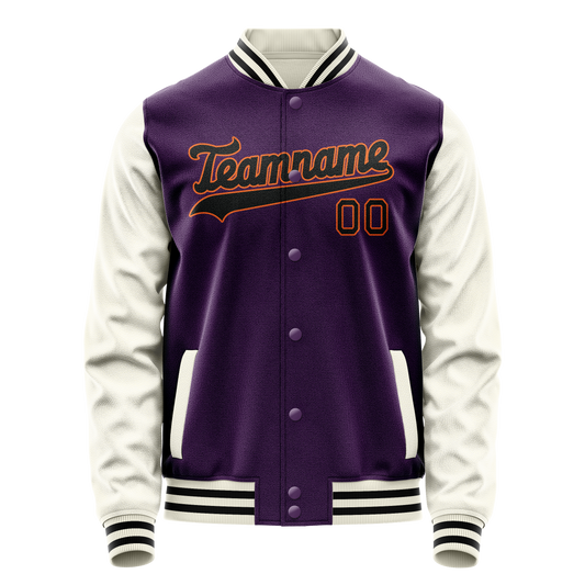 Custom Purple Cream Solid Color Varsity Letterman Jacket