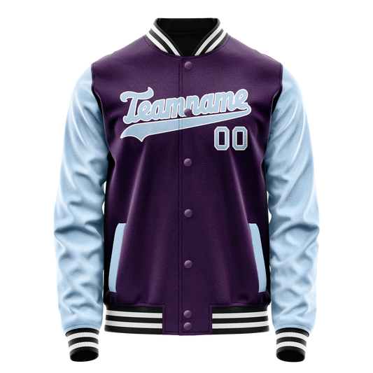 Custom Purple Light-Blue Solid Color Varsity Letterman Jacket
