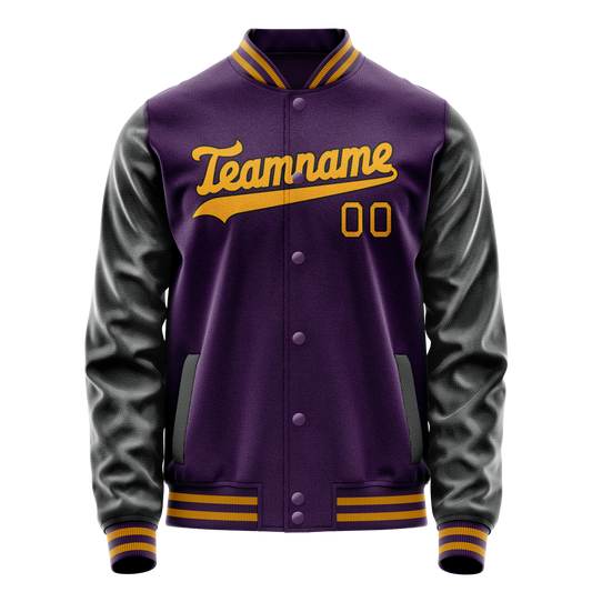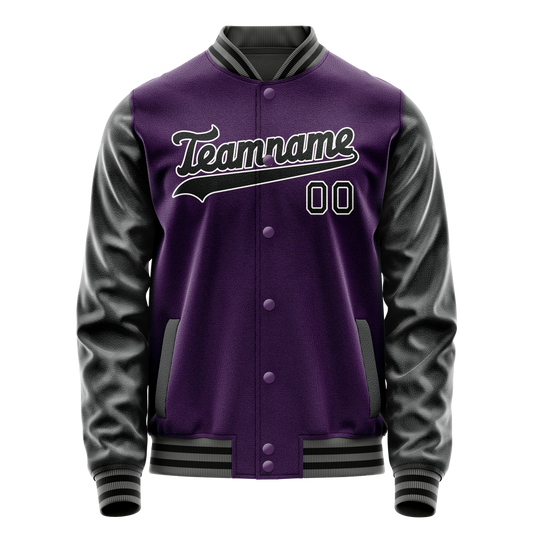 Custom Purple Black Solid Color Varsity Letterman Jacket