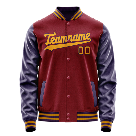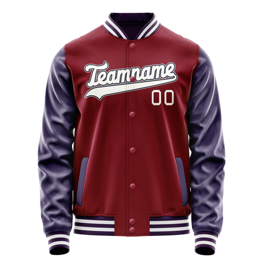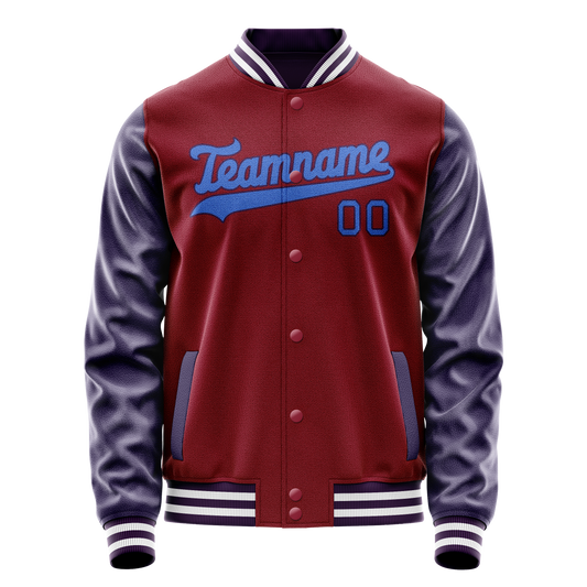 Custom Crimson Navy Solid Color Varsity Letterman Jacket