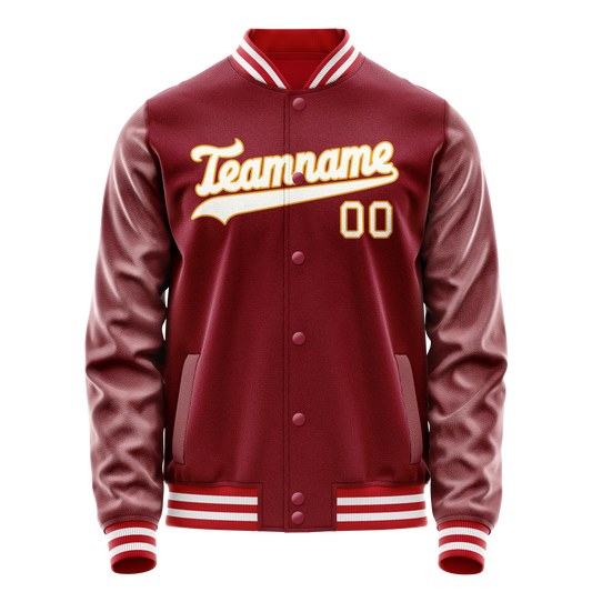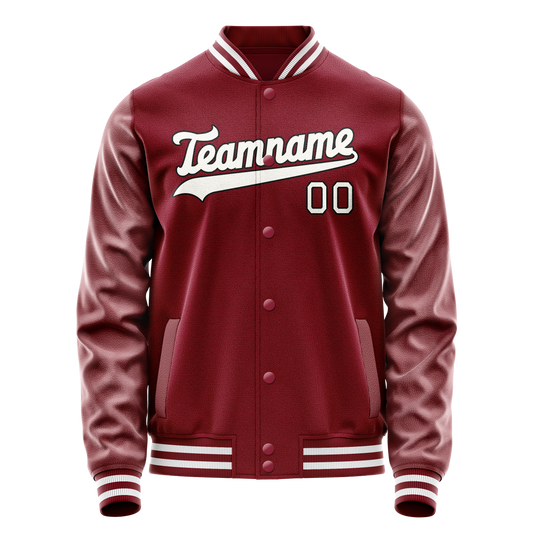 Custom Crimson Cream Solid Color Varsity Letterman Jacket