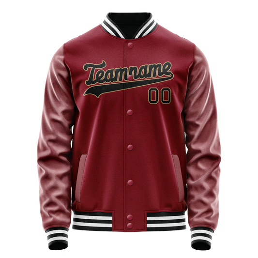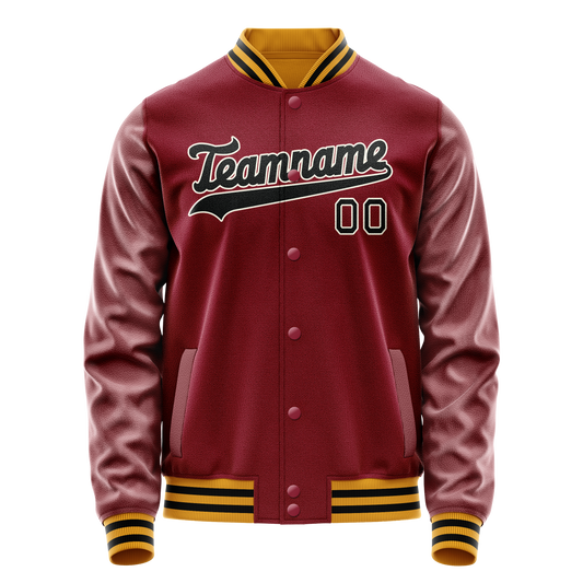 Custom Crimson Black Solid Color Varsity Letterman Jacket