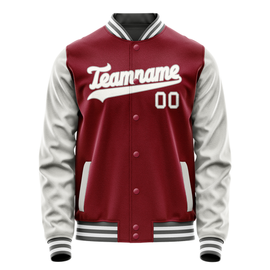 Custom Crimson Gray Solid Color Varsity Letterman Jacket